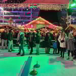 Im Anschluss ging es weiter zum Winter- und Erlebnisweihnachtsmarkt im Forum des Flughafens, wo wir bei Glühwein, Punsch und kleinen Leckereien den Abend in geselliger Runde genossen. Für sportliche Abwechslung sorgte das Eisstockschießen, bevor wir gemeinsam den Tag ausklingen ließen.