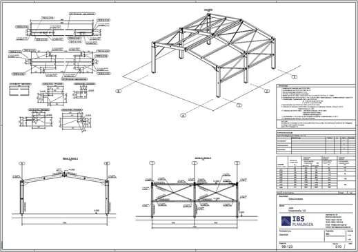 Nach verschiedenen vorbereitenden technischen Zeichnungen und einer Einführung in die Grundlagen der Modellierung und Planerstellung ging es auch schon los und die Praktikanten durften selbst Hand anlegen und eine eigene Stahlhalle planen und vermaßen. Von Tennishalle bis zur Fußballhalle sind hier wirklich sehr schöne Pläne entstanden.